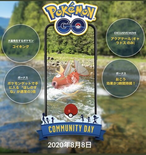 ポケGO恒例のコミュニティ・ディ8月はコイキングが大発生! 今更コイキングに興味はないが、ボーナスの「ポケモン捕獲時のほしのすな3倍」が美味しそうです。 ほしのかけらをつかえば3倍の1.5倍で4.5倍! 時給捕獲が100匹だとすると一匹捕まえるとすな450な…